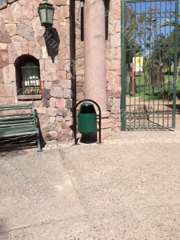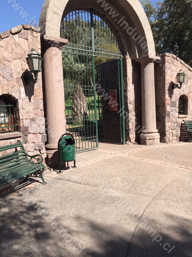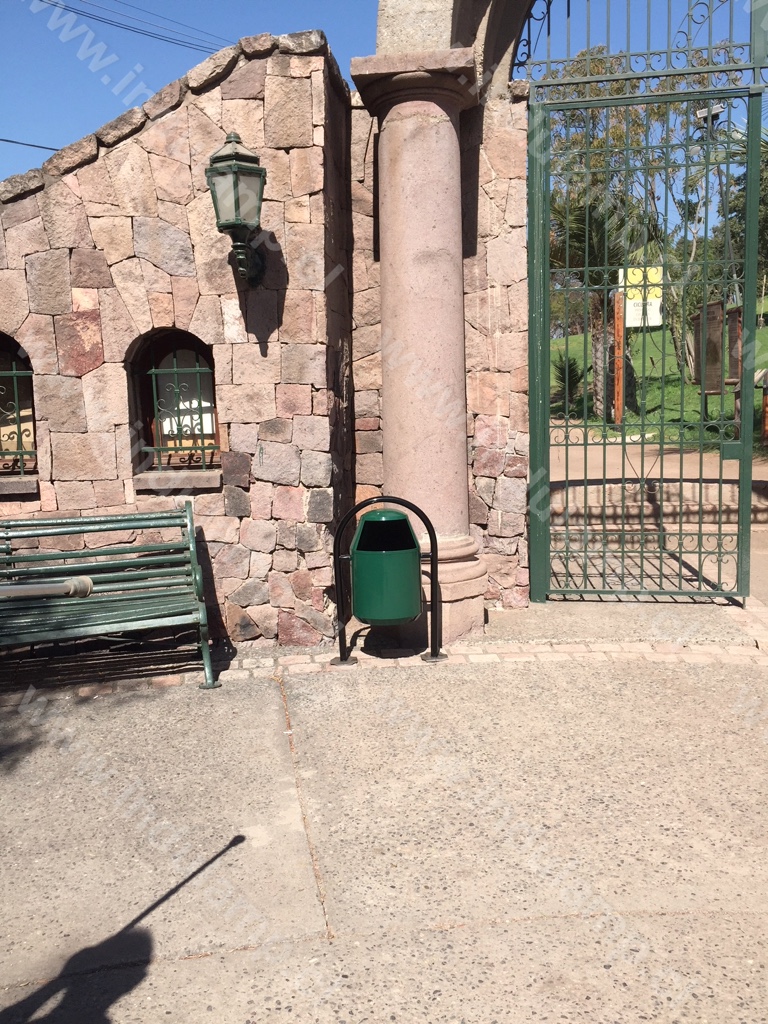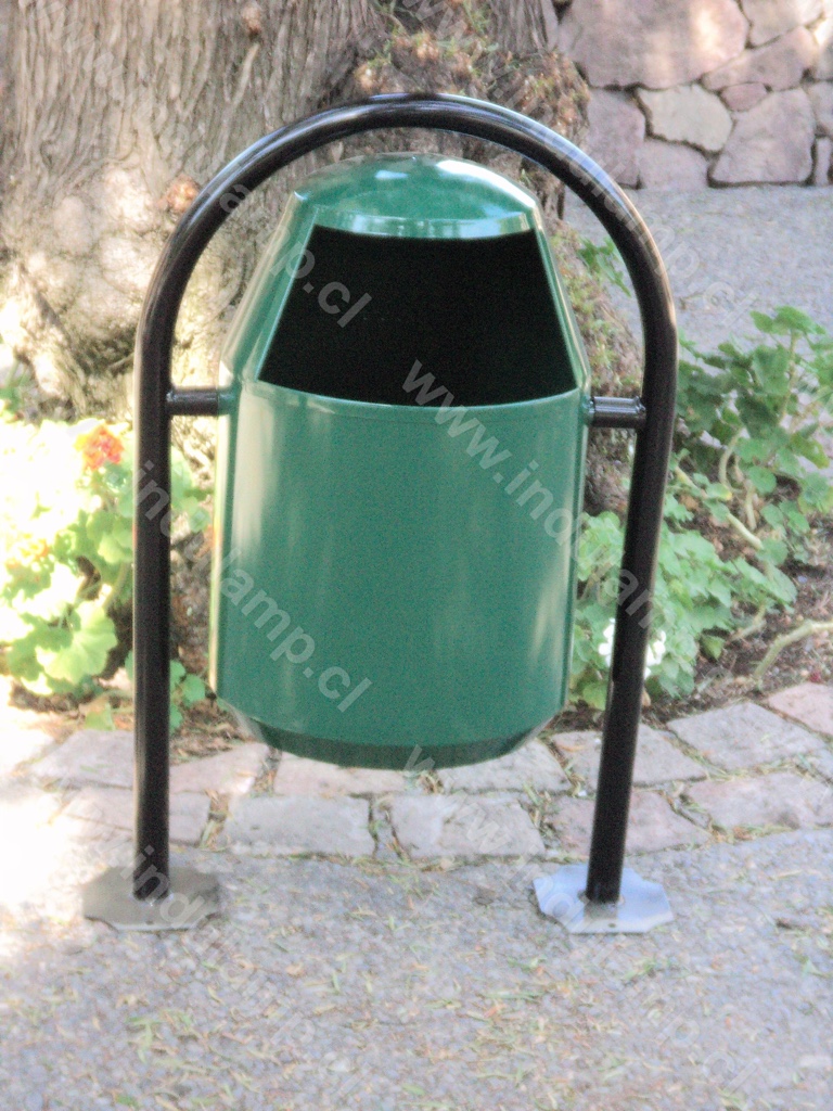 Basurero ideal para ser usado en plazas o en espacios abiertos expuestos al clima.